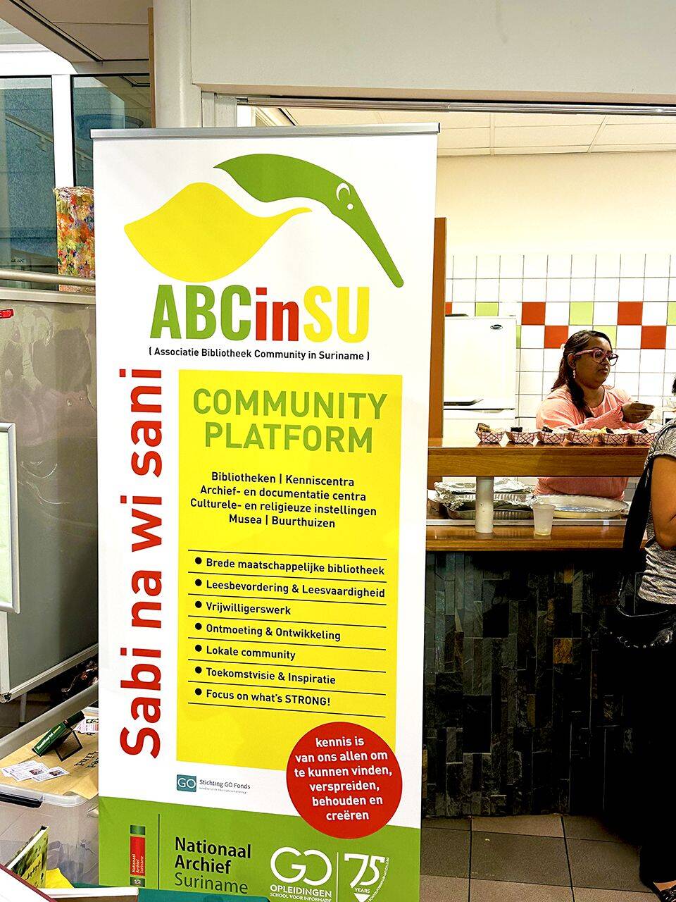 Tijdens het traject ontstond spontaan een nieuw platform: ABCinSU, een afkorting van Associatie Bibliotheken Community in Suriname. Het logo – een miereneter – symboliseert samenwerking en kracht. De slogan luidt: ‘Sabi Sani, na Wi Sani – kennis is van ons allen om te vinden, te verspreiden, te behouden en te creëren’. De missie van ABCinSU is helder: kennis delen, samenwerking bevorderen en gemeenschapsbetrokkenheid vergroten. Onder het motto ‘samen lezen, samen groeien’ willen de leden zich inzetten voor educatieve en culturele activiteiten.