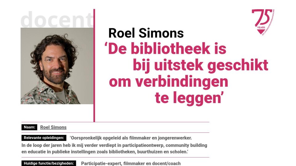 Mijn werk is in essentie eenvoudig: zien, luisteren, verbeelden, borgen. Film leerde mij dat ieder mens een hoofdpersoon is. Bibliotheken geven die hoofdpersoon een podium. Dat podium helpen bouwen, daar sta ik ’s ochtends graag voor op.’ ●