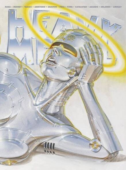 Cover Heavy Metal december 2021, tijdschrift 312, door Hajime Sorayama. Collectie Matthieu Scheffers, Den Haag.