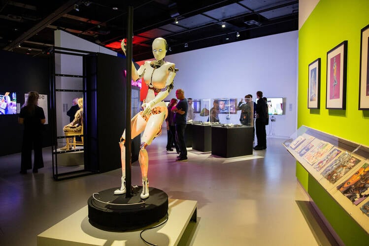 Speciaal voor deze tentoonstelling kocht het Design Museum Harmony en Tanya aan, twee seksrobots van het bedrijf RealDoll – hyperrealistische vrouwenlichamen die tot in detail zijn aan te passen en te programmeren. Met siliconenhuid, sprekende gezichten en ingebouwde AI zijn deze poppen ontworpen om niet alleen seksuele verlangens te vervullen, maar ook om te luisteren, te leren en te reageren.