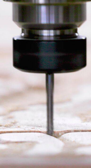 De installatie Ancient Future leunt op het ontwerp van Gelephu International Airport, een belangrijk onderdeel van Bhutans Gelephu Mindfulness City-masterplan (zie kader onder het kruisje). Centraal in de installatie staan vier gelamineerde balken, geproduceerd in Denemarken – het thuisland van BIG, bedenker van de installatie én van het nog te bouwen vliegveld. Twee balken worden minutieus met de hand gesneden door ambachtslieden Sangay Thsering en Yeshi Gyeltshen, terwijl de andere twee balken worden gevormd door een AI-aangedreven robotfreesarm die de motieven gelijktijdig nabootst.