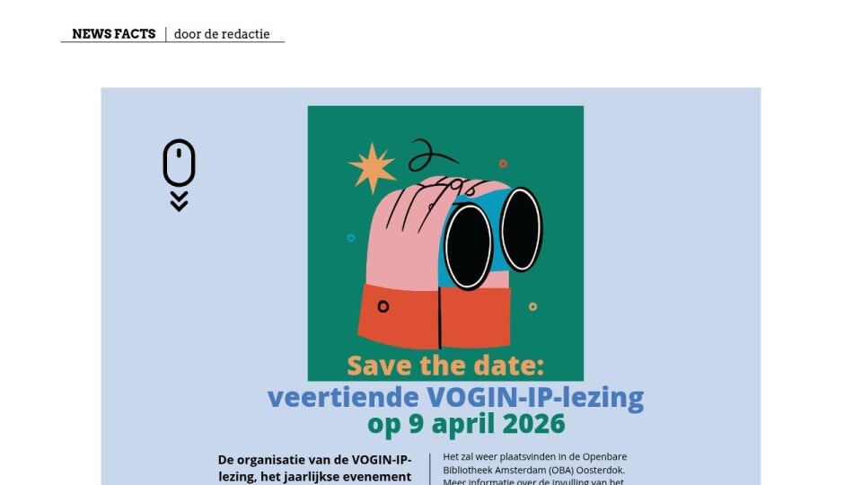 De organisatie van de VOGIN-IP-lezing, het jaarlijkse evenement voor informatieprofessionals over het zoeken en vinden van informatie, heeft een nieuwe datum geprikt voor de volgende editie: donderdag 9 april 2026.