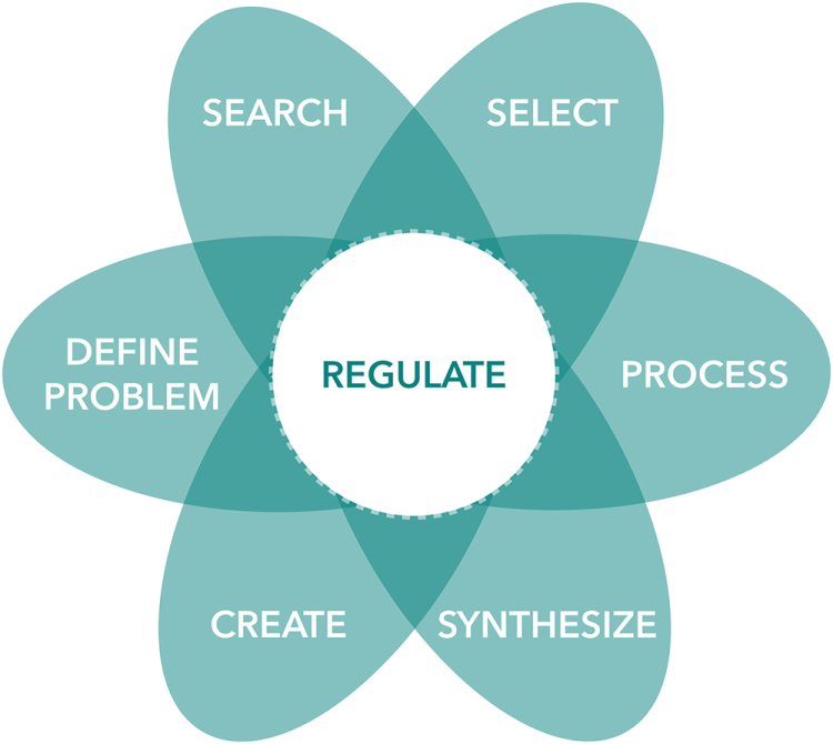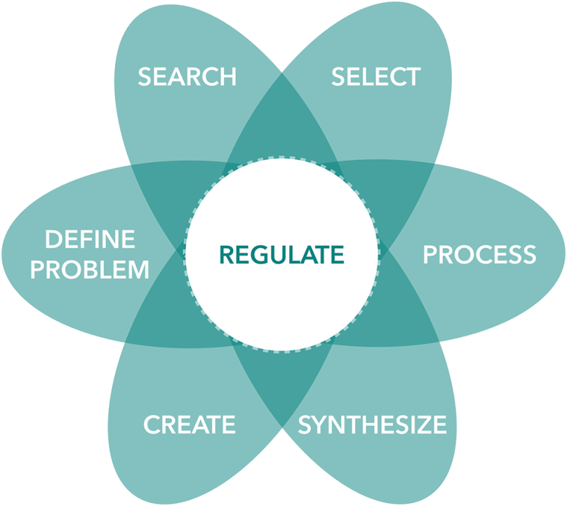 Afbeelding 1: de deelcompetenties van het informatievaardighedenproces (Boetje, 2025)